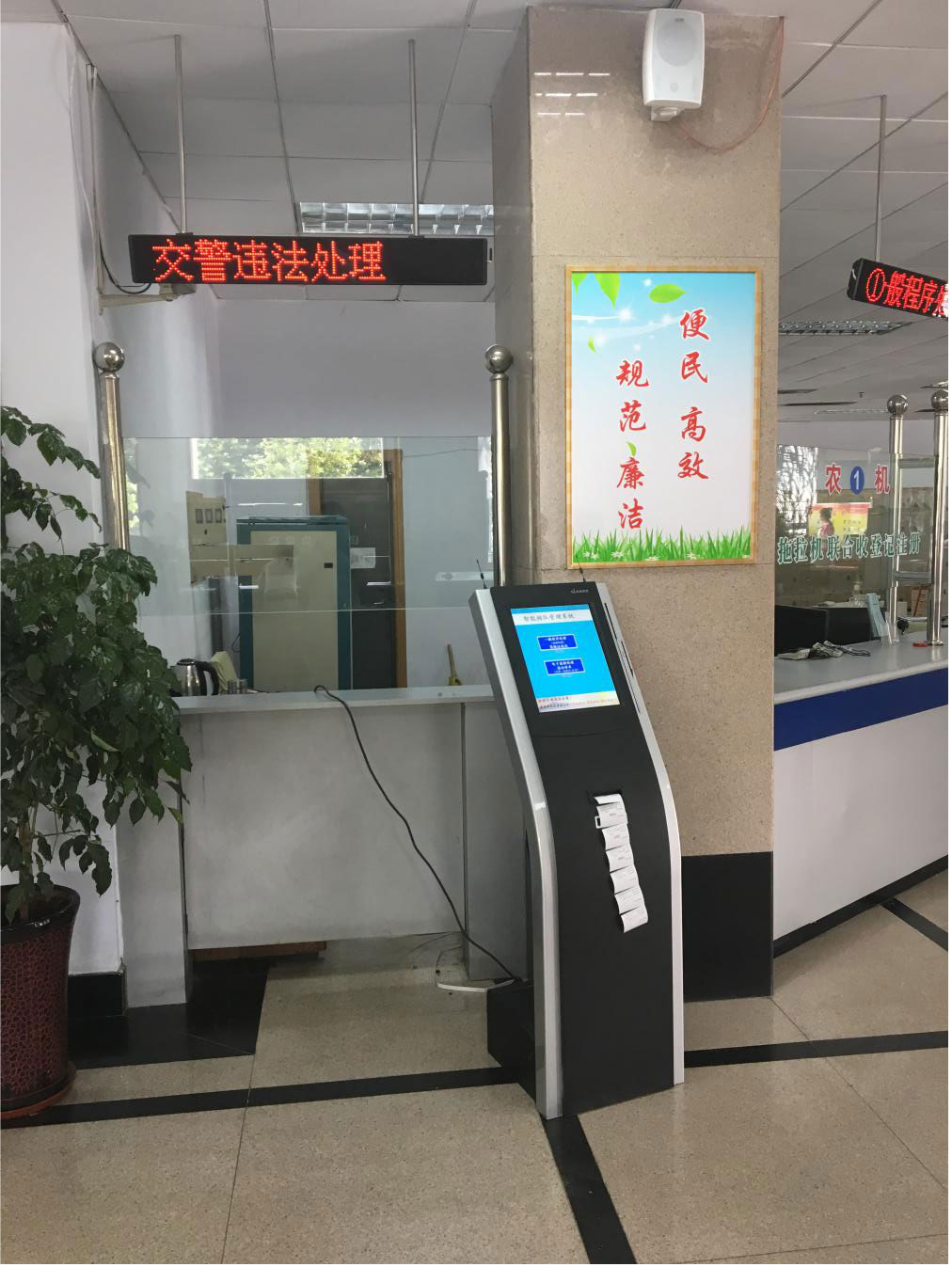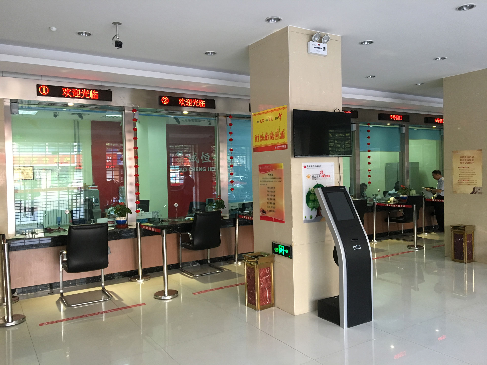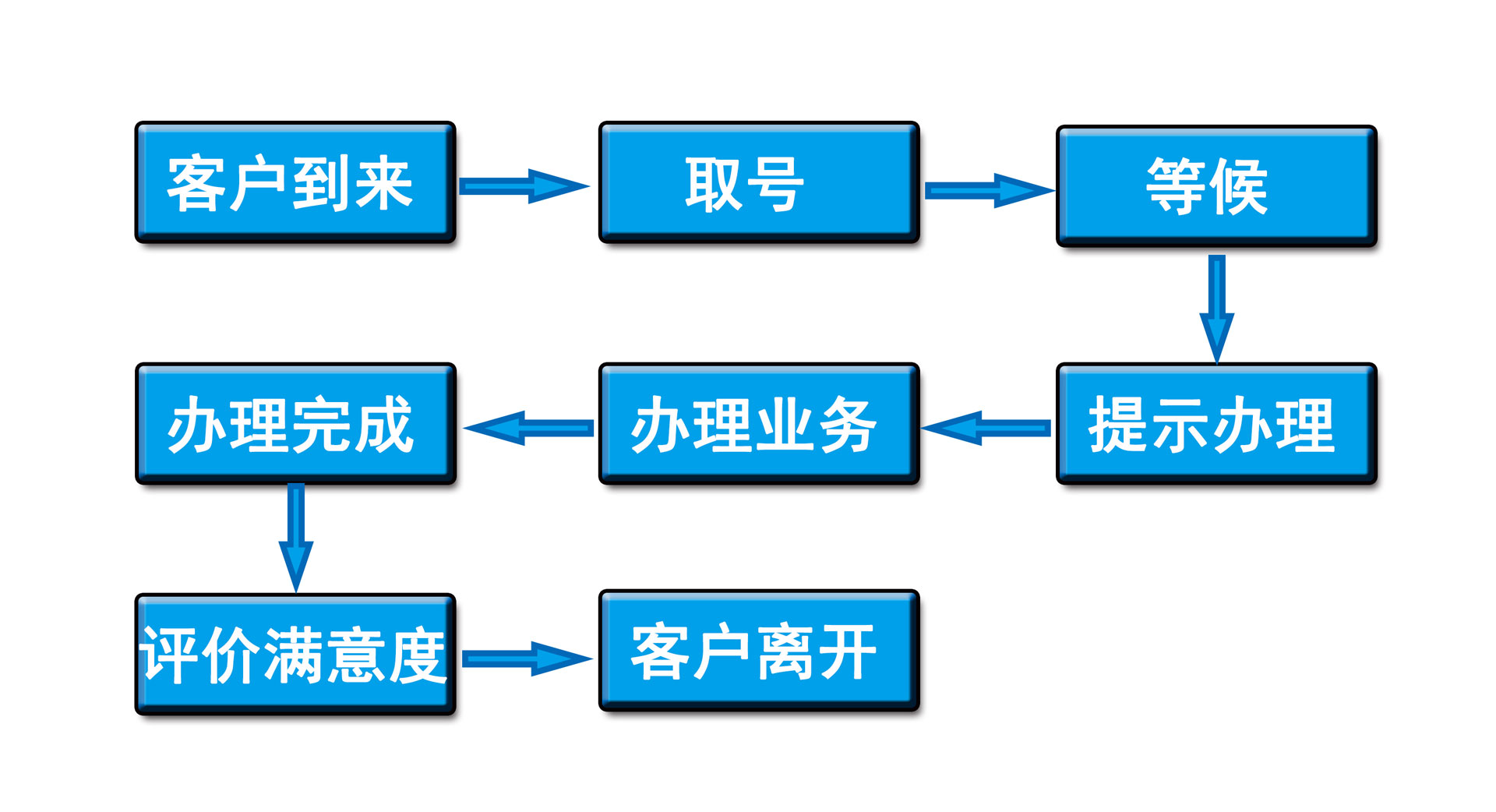 當客戶抵達營業(yè)廳時,前往放置于大廳內(nèi)的取號機處,選擇自己所需辦理的業(yè)務,取號機會自動打印出一張排隊小票,同時系統(tǒng)自動將該序號信息由取號機傳至呼叫和排隊管理系統(tǒng)數(shù)據(jù)庫中??蛻舾鶕?jù)排隊小票提示來到等候區(qū)域等候。當工作人員需要客戶前來接受服務時,按一下呼叫器上的“呼叫”鍵,請求會發(fā)送到管理軟件,“請到XXX號到X號窗口辦理業(yè)務”進行播報,以提醒客戶,客戶可從指示屏上得知柜臺號等信息,前去辦理即可。